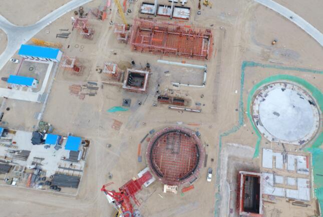 圖:魯能格爾木熔鹽塔式光熱項(xiàng)目建設(shè)現(xiàn)場(chǎng)俯瞰