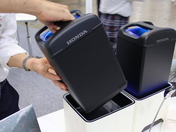 可更換鋰離子電池組的名稱是“本田移動(dòng)電源包”(Honda Mobile Power Pack),頂部有一個(gè)把手。該電池組的重量預(yù)計(jì)為8千克,女性可單手提起。松下和本田表示還未決定電池組內(nèi)電池芯的數(shù)量和電池容量。但是,考慮到便利性,電池容量可能為1至1.5千瓦時(shí)。