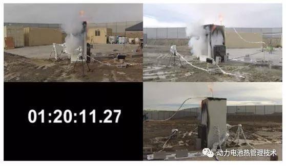 不管是內(nèi)部觸發(fā)還是外部觸發(fā),實驗過程沒有外部直接去中斷或干預(yù)燃燒,這次實驗為公共消防提供了一些數(shù)據(jù),如外部加熱約1h會達(dá)到可維持的熱失控條件,電池?zé)崾Э乇Wo(hù),火災(zāi)反應(yīng)及處理機(jī)制等,當(dāng)然還有一些燃燒氣體成分分析等等。