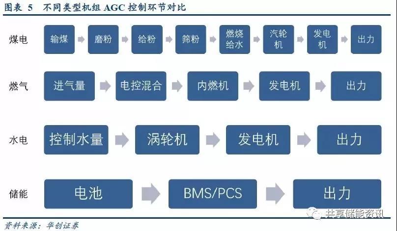 煤電 AGC 機(jī)組成本較高、性能差,水電 AGC 成本較低、資源有限,儲能調(diào)頻最為靈活。 火電機(jī)組正常 AGC運(yùn)行中,一方面影響了其最優(yōu)發(fā)電曲線,導(dǎo)致其經(jīng)濟(jì)性下降。另一方面,由于 AGC 指令的頻繁反復(fù)變化(平均 1——2 分鐘變化一次),使得機(jī)組的燃料、給水、送風(fēng)等各控制量也大幅來回波動,此時(shí)雖然主汽壓力、溫度等被控參數(shù)較為穩(wěn)定,但會造成鍋爐水冷壁和過熱器管材熱應(yīng)力的反復(fù)變化,容易導(dǎo)致氧化皮脫落,大大增加了鍋爐爆管的可能性。