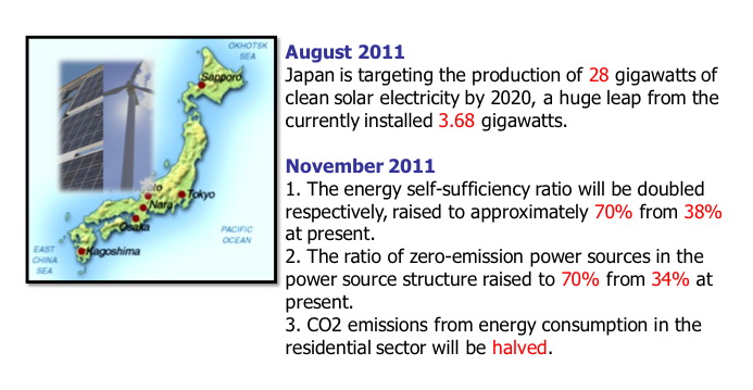 對于日本而言,能源獨立,已是刻不容緩的事情。2011年日本福島大地震之后,核災的問題讓日本開始重視再生能源的實際應用,2012年第一季度甚至開始計劃關閉所有核電廠,而太陽能將會是未來的重要發(fā)電方式之一。