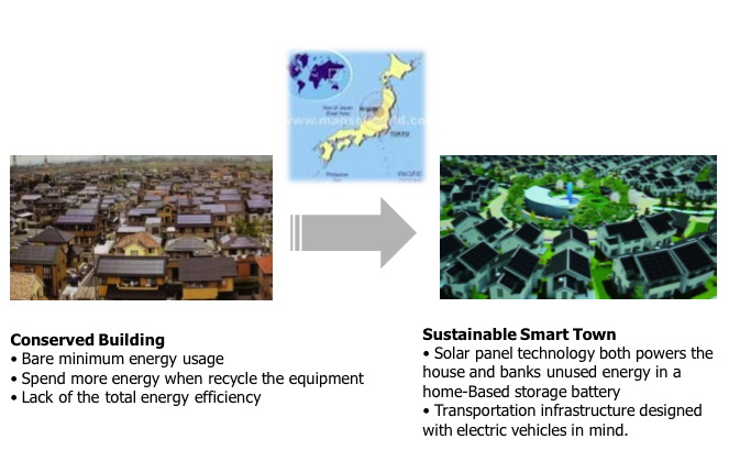 地震對于日本所帶來的影響,除了是對于天災預防所促成的警惕以外,對核能所產(chǎn)生的風險問題也讓整體能源產(chǎn)業(yè)面臨到重新思考的地步。對于東北地區(qū)而言,所產(chǎn)生的災害是全面性的,也因此讓日本期待新一波的造鎮(zhèn)精神能夠落實于重建區(qū)(圖五)。