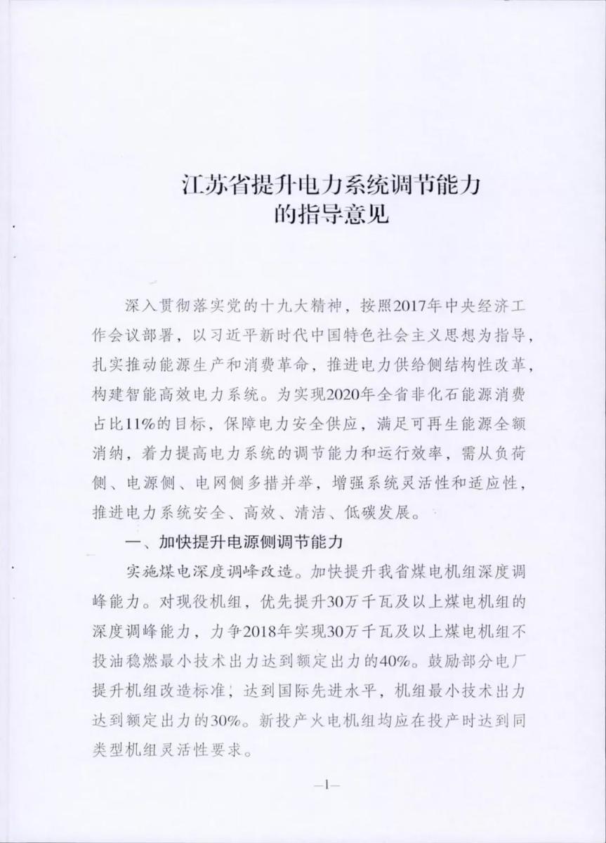 中國儲(chǔ)能網(wǎng)訊:近日,國家能源局江蘇監(jiān)管辦聯(lián)合江蘇省相關(guān)部門印發(fā)了《江蘇省提升電力系統(tǒng)調(diào)節(jié)能力的指導(dǎo)意見》,旨在實(shí)現(xiàn)2020年全省非化石能源消費(fèi)占比11%的目標(biāo),保障電力安全供應(yīng),滿足可再生能源全額消納,著力提高電力系統(tǒng)調(diào)節(jié)能力和運(yùn)行效率,需從負(fù)荷側(cè)電源側(cè)、電網(wǎng)側(cè)多措并舉,增強(qiáng)系統(tǒng)靈活性與適應(yīng)性,推進(jìn)電力系統(tǒng)安全高效清潔低碳發(fā)展。