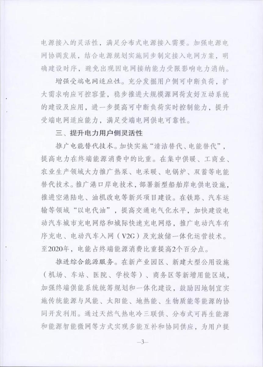 用戶側(cè)將推廣電能替代技術(shù),加快建設(shè)電動(dòng)汽車城市充電網(wǎng)絡(luò)和城際快速充電網(wǎng)絡(luò),推廣電動(dòng)汽車有序充電、電動(dòng)汽車入網(wǎng)(V2G)及充放儲(chǔ)一體化運(yùn)營(yíng)技術(shù),至2020年,電能占終端能源消費(fèi)比重提高2個(gè)百分點(diǎn)。推進(jìn)綜合能源服務(wù),在新產(chǎn)業(yè)園區(qū)、新建大型公用設(shè)施、商業(yè)區(qū)等新增用能區(qū)域,通過分布式可再生能源和能源智能微網(wǎng)等方式實(shí)現(xiàn)多能互補(bǔ)協(xié)同供應(yīng),開展分布式能源市場(chǎng)化交易。