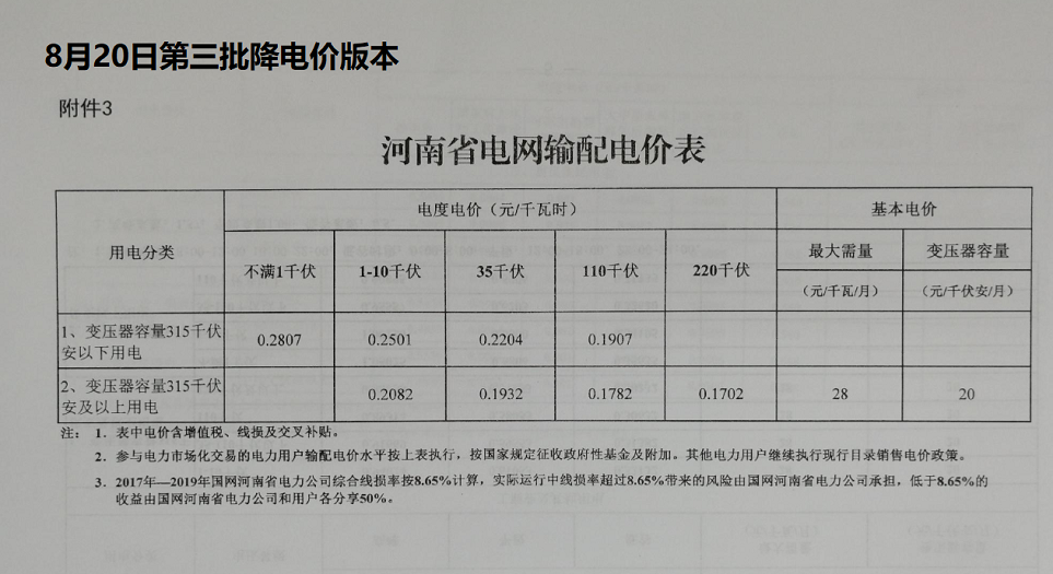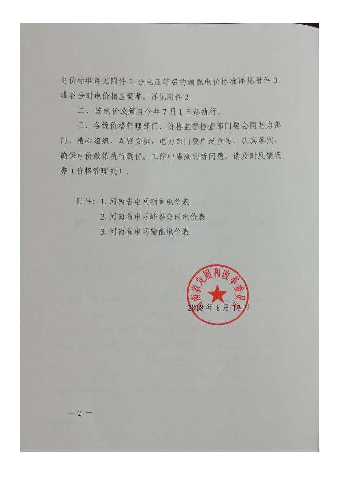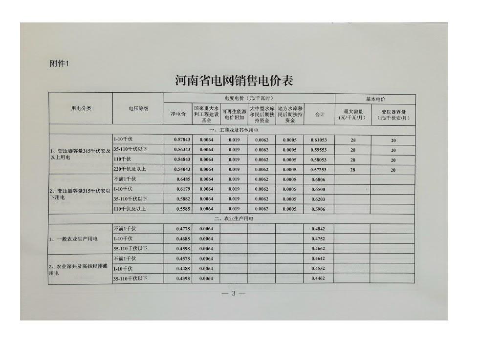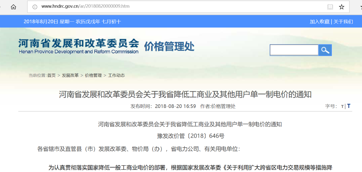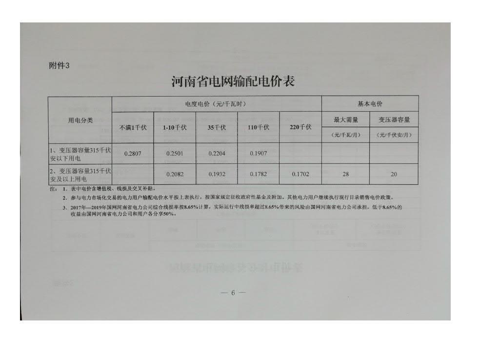 河南省發(fā)展和改革委員會(huì)關(guān)于我省降低工商業(yè)及其他用戶單一制電價(jià)的通知