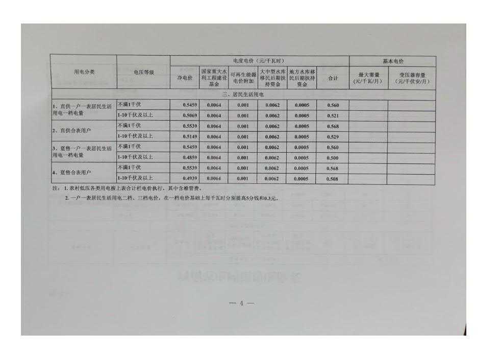 一、我省工商業(yè)及其他用戶單一制電價(jià)平均降低6.24分/千瓦時(shí),其他用電類別銷售電價(jià)不做調(diào)整。分電壓等級(jí)的銷售電價(jià)標(biāo)準(zhǔn)詳見附件1,分電壓等級(jí)的輸配電價(jià)標(biāo)準(zhǔn)詳見附件3,峰谷分時(shí)電價(jià)相應(yīng)調(diào)整,詳見附件2。