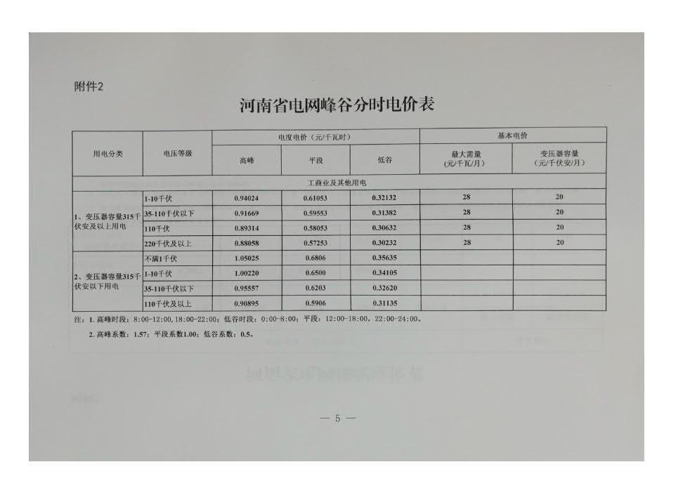 2.河南省電網(wǎng)峰谷分時(shí)電價(jià)表