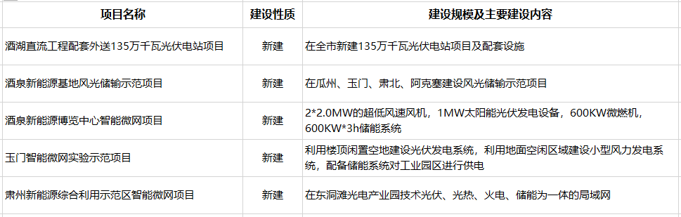 酒泉市能源發(fā)展“十三五”規(guī)劃重點項目表(光伏、儲能、智能微網(wǎng)部分)