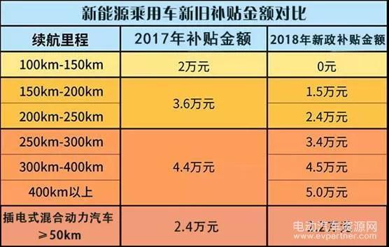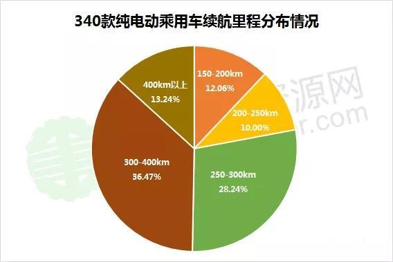 如上圖所示,根據(jù)2018年新能源汽車補貼政策,純電動乘用車將細分6個檔次進行補貼。經(jīng)電動汽車資源網(wǎng)梳理,入圍5、6推薦目錄的340款純電動乘用車中有41款純電動乘用車續(xù)航里程低于200km,占比12.06%;有34款純電動乘用車續(xù)航里程在200-250km區(qū)間,占比10.00%;有96款純電動乘用車續(xù)航里程在250-300km區(qū)間,占比28.24%;有124款純電動乘用車續(xù)航里程在300-400km區(qū)間,占比36.47%;有45款純電動乘用車續(xù)航里程高于400km,占比13.24%??傮w來看,入圍5、6推薦目錄中純電動乘用車續(xù)航里程提升較為明顯,續(xù)航里程高于300km的車型占比已經(jīng)接近50%。