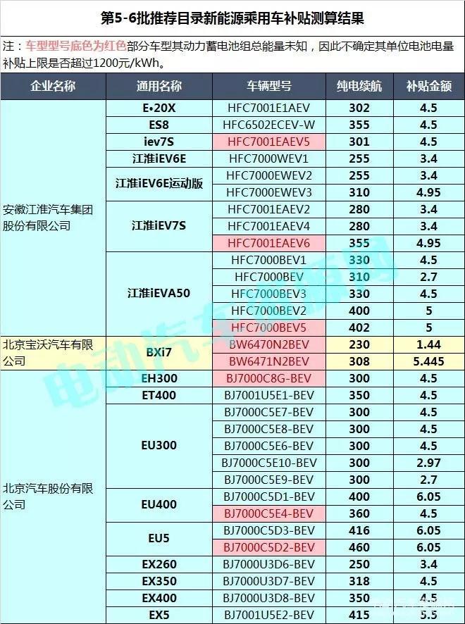 中國儲能網(wǎng)訊:6月6日,工信部發(fā)布《新能源汽車推廣應(yīng)用推薦車型目錄》(2018年第6批)。工信部指出,按照《關(guān)于調(diào)整完善新能源汽車推廣應(yīng)用財政補貼政策的通知》(財建〔2018〕18號)要求,政策過渡期到2018年6月11日結(jié)束。自2018年6月12日起,2017年第1-12批及2018年第1-4批《推薦車型目錄》將予以廢止。也就是說目前有效的推薦目錄僅有5、6批,電動汽車資源網(wǎng)對進入5、推薦目錄的400款新能源乘用車進行了詳細的梳理,并粗略測算了其補貼金額。