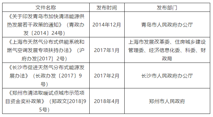 國家層面對于天然氣發(fā)電及燃氣聯(lián)供項目有明確補貼支持和數(shù)量要求的政策性文件主要如下表1所示。