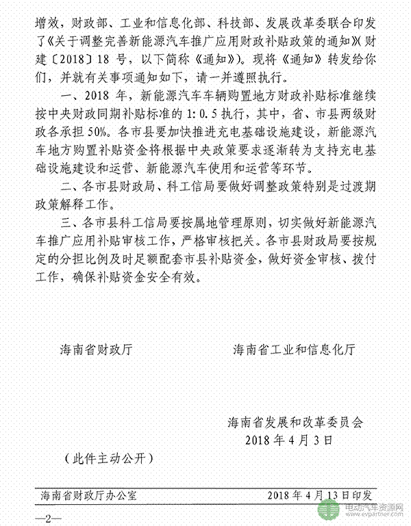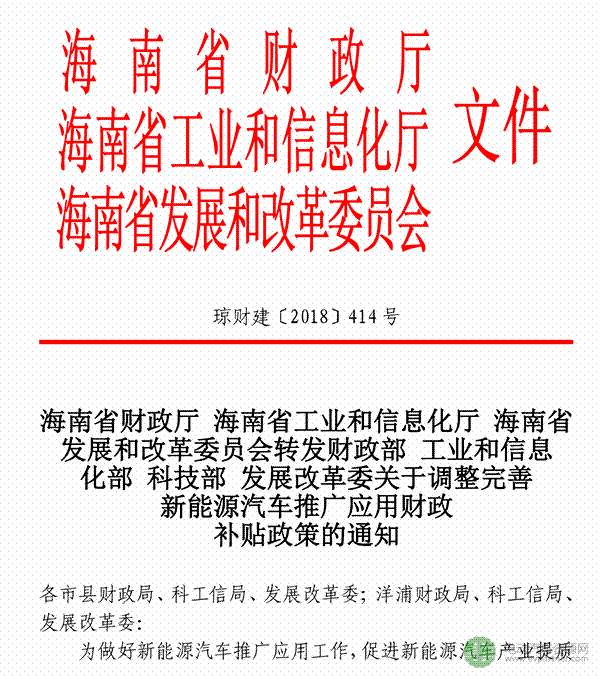 中國儲(chǔ)能網(wǎng)訊:海南省轉(zhuǎn)發(fā)四部委發(fā)布的《關(guān)于調(diào)整完善新能源汽車推廣應(yīng)用財(cái)政補(bǔ)貼政策的通知》,對(duì)海南省新能源汽車地補(bǔ)做出規(guī)定和解釋。2018年,新能源汽車車輛購置地方財(cái)政補(bǔ)貼標(biāo)準(zhǔn)繼續(xù)按中央財(cái)政同期補(bǔ)貼標(biāo)準(zhǔn)的1:0.5執(zhí)行,其中,省、市縣兩級(jí)財(cái)政各承擔(dān)50%。各市縣要加快推進(jìn)充電基礎(chǔ)設(shè)施建設(shè),新能源汽車地方購置補(bǔ)貼資金將根據(jù)中央政策要求逐漸轉(zhuǎn)為支持充電基礎(chǔ)設(shè)施建設(shè)和運(yùn)營、新能源汽車使用和運(yùn)營等環(huán)節(jié)。