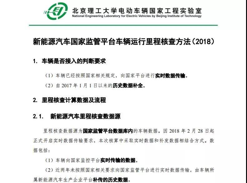 中國儲能網(wǎng)訊:日前,根據(jù)國家監(jiān)管平臺任務(wù)需求,電動車輛國家工程實驗室(新能源汽車國家監(jiān)測與管理平臺)自2017年10月多次組織車企、廠商討論,并于2018年1月30日召開了國家監(jiān)管平臺動態(tài)數(shù)據(jù)接入問題及里程核算算法研討會,得到了眾多新能源汽車企業(yè)的認可,經(jīng)反復(fù)試算、校驗和優(yōu)化,形成了《新能源汽車國家監(jiān)管平臺車輛運行里程核查方法(2018)》(以下簡稱《里程核查方法》),并予以公示。里程核查主要是對車輛數(shù)據(jù)真實性、完整性進行檢測。