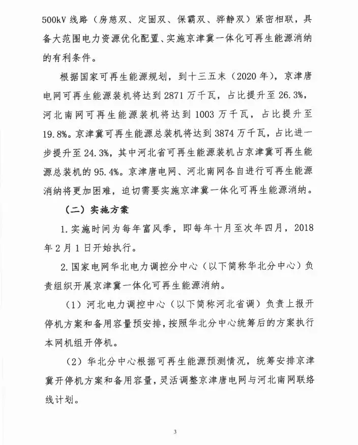 中國儲能網(wǎng)訊:能源小編從河北發(fā)改委獲悉,實施京津冀一體化可再生能源消納時間為每年富風(fēng)季,即每年十月至次年四月,于2018年2月1日開始執(zhí)行。國家電網(wǎng)華北電力調(diào)控分中心(以下簡稱華北分中心)負(fù)責(zé)組織開展京津冀一體化可再生能源消納,如不能全額消納時,華北分中心應(yīng)充分發(fā)揮華北電網(wǎng)的作用,實施跨省消納。若區(qū)域內(nèi)仍無法消納,向國調(diào)申請跨區(qū)域消納。
