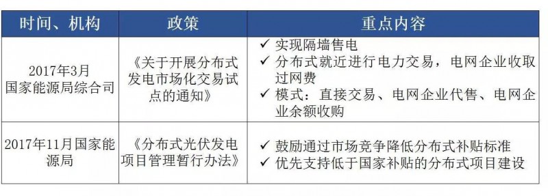 趨勢二國家政策向分布式傾斜,“隔墻售電”有望加速分布式光伏發(fā)展。隨著對分布式發(fā)電相適應(yīng)的電網(wǎng)技術(shù)服務(wù)管理體系、電力交易機(jī)制和輸配電價(jià)政策改革等的探索,最終形成可普遍適用的分布式發(fā)電的技術(shù)、市場和政策體系也將不會遙遠(yuǎn)。