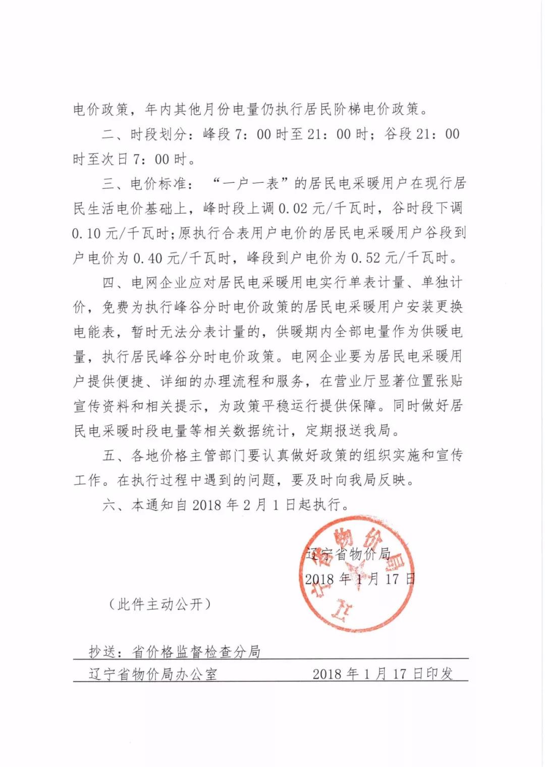 遼寧省關(guān)于對居民電采暖用戶試行峰谷分時電價政策的通知