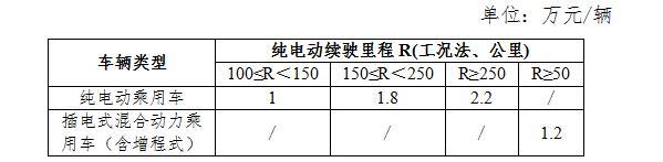 新能源乘用車補(bǔ)貼標(biāo)準(zhǔn)