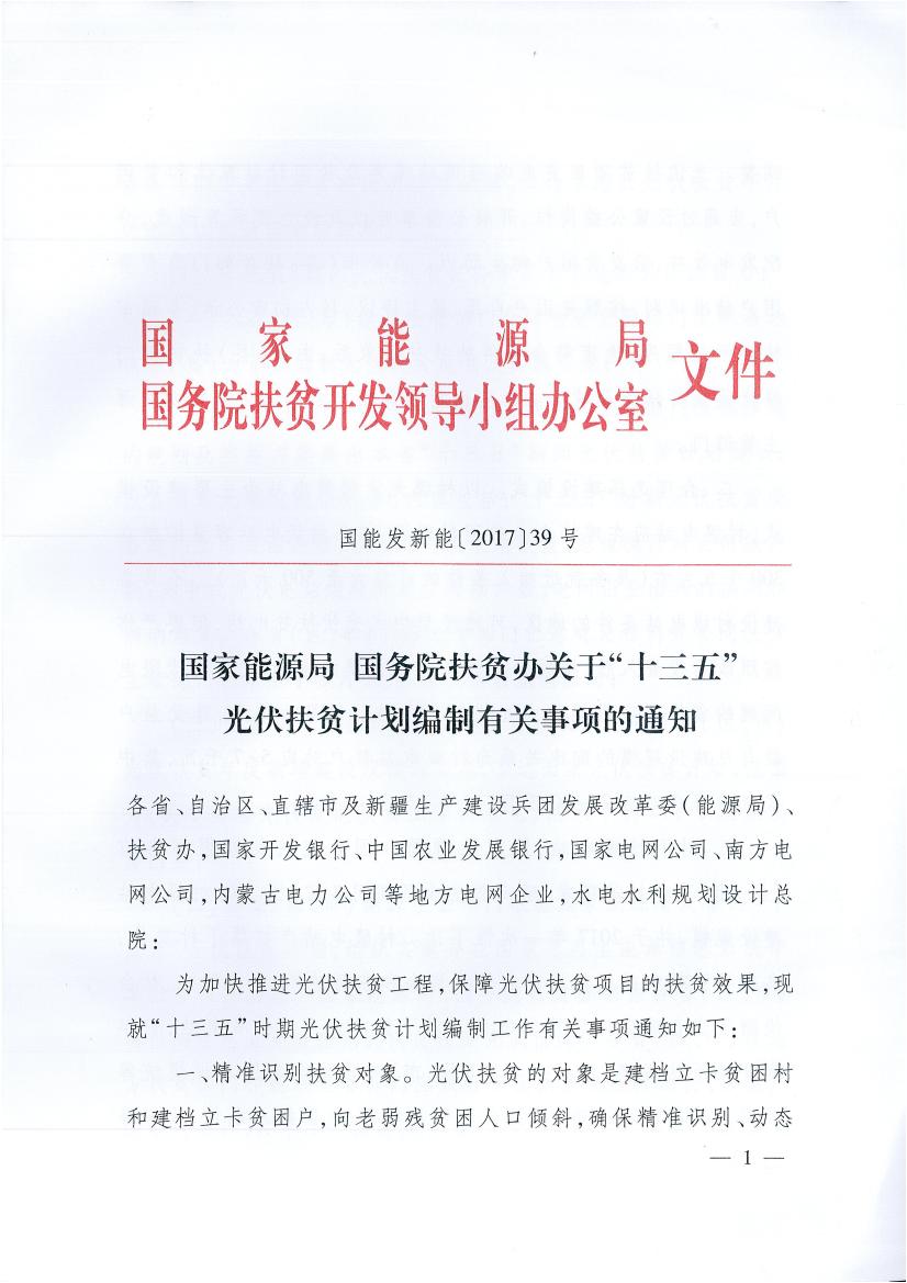 國家能源局 國務(wù)院扶貧辦關(guān)于“十三五”光伏扶貧計(jì)劃編制有關(guān)事項(xiàng)的通知