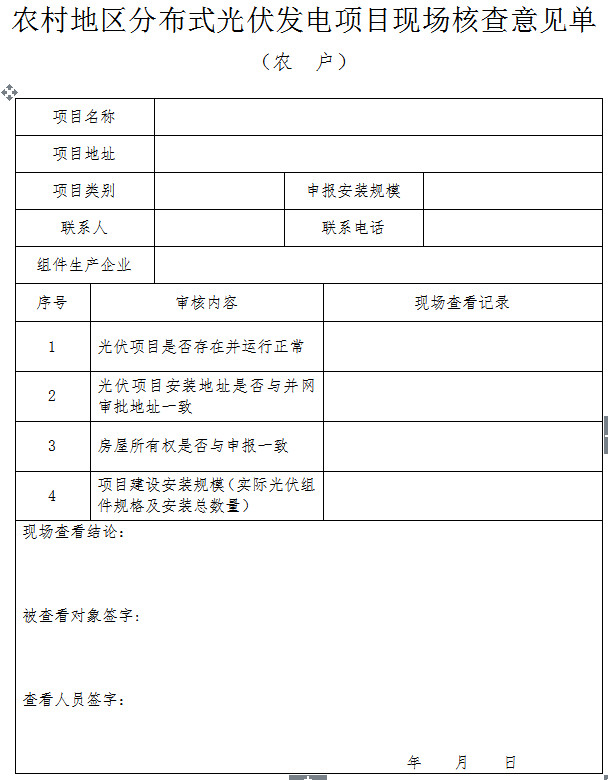 附件3:《農(nóng)村地區(qū)分布式光伏發(fā)電項(xiàng)目現(xiàn)場(chǎng)核查意見(jiàn)單(農(nóng)戶)》