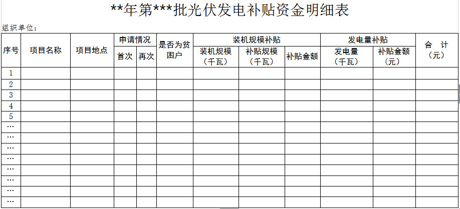 附件5:《**年第*批光伏發(fā)電補(bǔ)貼資金明細(xì)表》