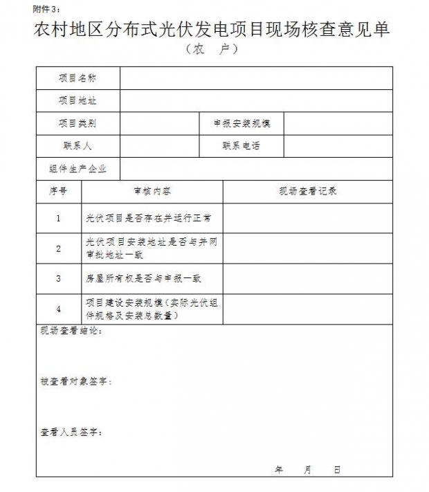 附件3:《農村地區(qū)分布式光伏發(fā)電項目現(xiàn)場核查意見單(農戶)》(詳見配圖)