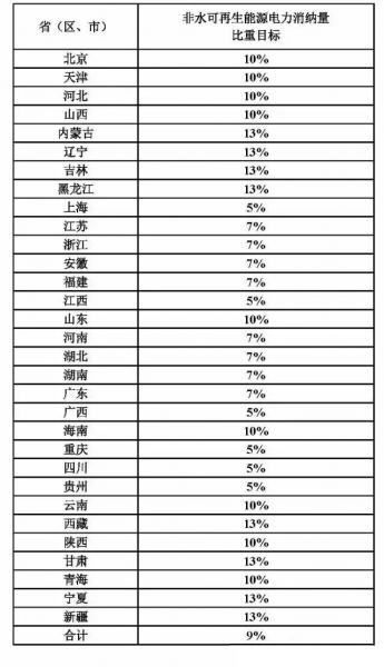 國家能源局根據(jù)各地區(qū)可再生能源資源狀況和能源消費(fèi)水平,依據(jù)全國可再生能源開發(fā)利用中長期總量目標(biāo),制定各?。▍^(qū)、市)能源消費(fèi)總量中的可再生能源比重目標(biāo)和全社會(huì)用電量中的非水電可再生能源電量比重指標(biāo),并予公布。鼓勵(lì)各?。▍^(qū)、市)能源主管部門制定本地區(qū)更高的可再生能源利用目標(biāo)。
