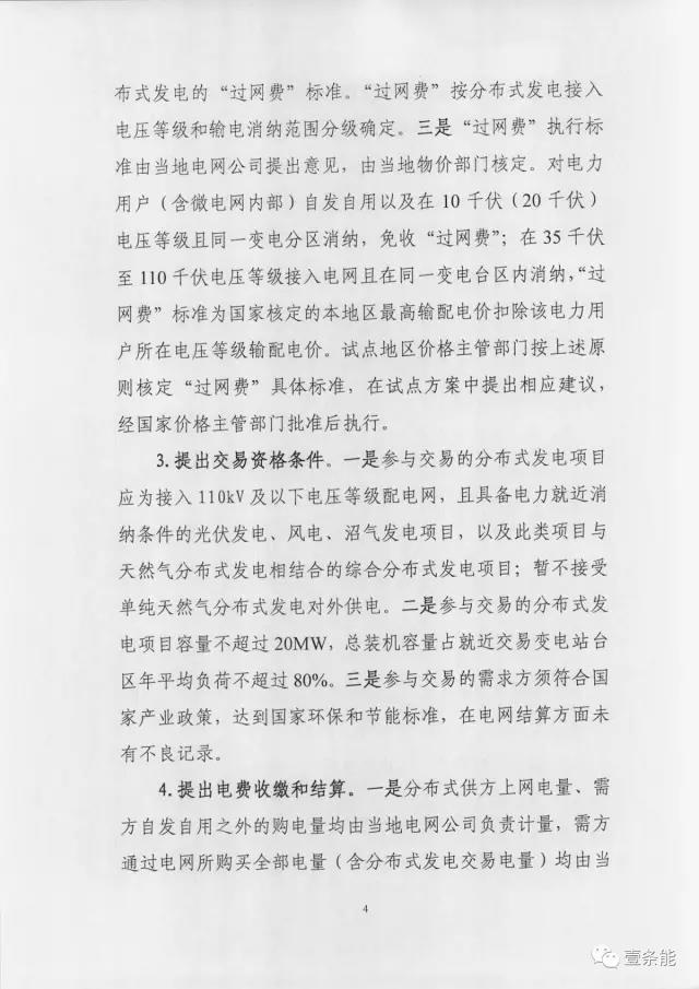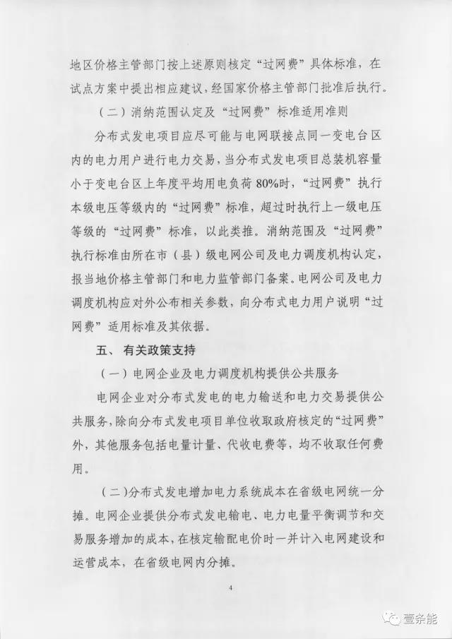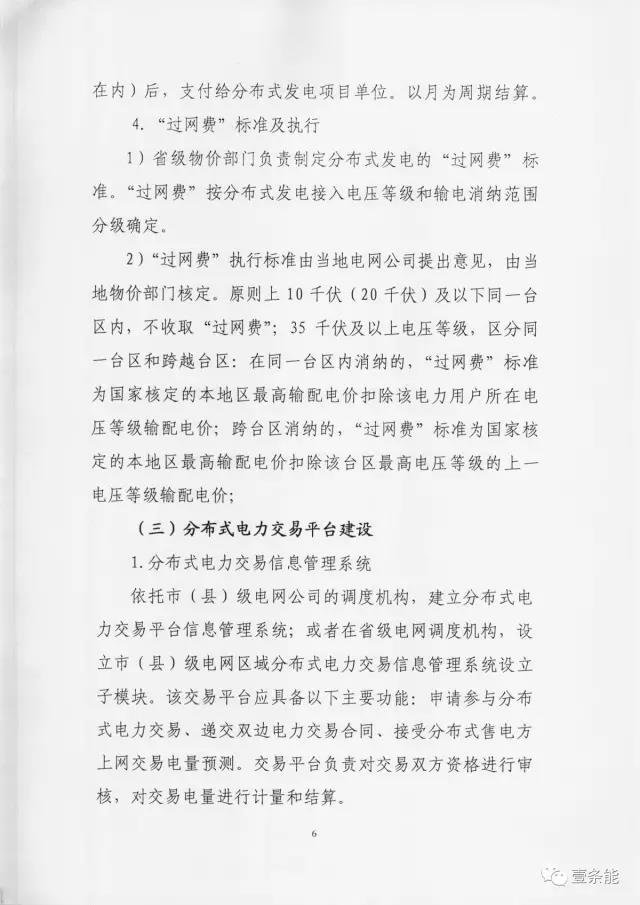 4、過網(wǎng)費(fèi)標(biāo)準(zhǔn):電力用戶(含微電網(wǎng)內(nèi)部)自發(fā)自用及在10(20)千伏電壓等級且同一變電臺區(qū)內(nèi)消納,免收過網(wǎng)費(fèi);35-100千伏接入電網(wǎng)且在同一變電臺區(qū)內(nèi)消納,過網(wǎng)費(fèi)標(biāo)準(zhǔn)為國家核定的本地區(qū)最高輸配電價(jià)扣除改電力用戶所在電壓等級輸配電價(jià)。