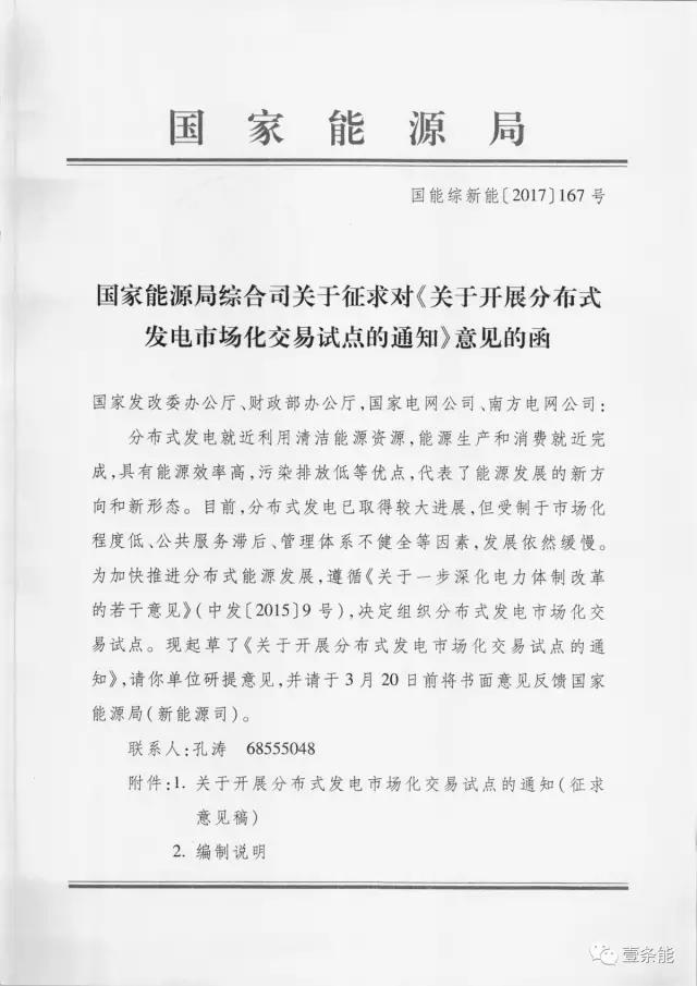 中國儲能網(wǎng)訊:近日,國家能源局綜合司近日下發(fā)關(guān)于征求對《關(guān)于開展分布式發(fā)電市場化交易試點(diǎn)的通知》意見的函。