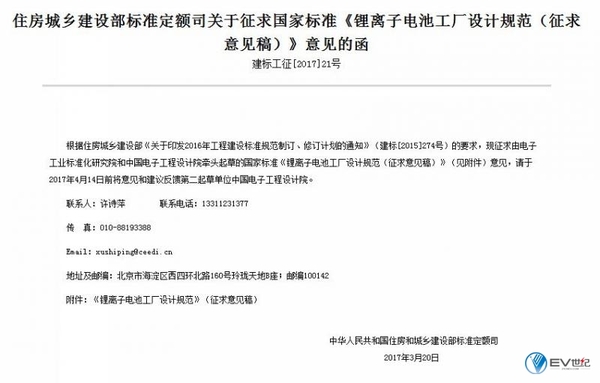 該《設(shè)計(jì)規(guī)范》由電子工業(yè)標(biāo)準(zhǔn)化研究院和中國(guó)電子工程設(shè)計(jì)院牽頭起草,對(duì)鋰離子電池工廠在選址、規(guī)劃、建筑結(jié)構(gòu)、工藝、采暖通風(fēng)、空氣凈化、給水排水等方面進(jìn)行了詳細(xì)規(guī)定。