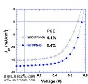 中國儲能網(wǎng)訊: 來自華南理工大學發(fā)光材料與器件國家重點實驗室、阿克倫大學和Bruker集團納米表面實驗室的學者日前公布了在高分子太陽能電池領(lǐng)域的最新研究進展,通過采用共軛聚電解質(zhì)PBDT-DTNT和富勒烯衍生物電子受體PC71BM,該團隊制作出了轉(zhuǎn)換效率8.4%的倒置結(jié)構(gòu)(或稱反相結(jié)構(gòu))有機太陽能電池。該結(jié)果已在在英國皇家化學學會期刊上發(fā)表。