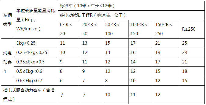 注:上述補(bǔ)助標(biāo)準(zhǔn)以10-12米客車為標(biāo)準(zhǔn)車給予補(bǔ)助,其他長(zhǎng)度純電動(dòng)客車補(bǔ)助標(biāo)準(zhǔn)按照上表單位載質(zhì)量能量消耗量和純電動(dòng)續(xù)駛里程劃分,插電式混合動(dòng)力客車(含增程式)補(bǔ)助標(biāo)準(zhǔn)按照上表純電動(dòng)續(xù)駛里程劃分。其中,6米及以下客車按照標(biāo)準(zhǔn)車0.2倍給予補(bǔ)助;6米<車長(zhǎng)≤8米客車按照標(biāo)準(zhǔn)車0.5倍給予補(bǔ)助;8米<車長(zhǎng)≤10米客車按照標(biāo)準(zhǔn)車0.8倍給予補(bǔ)助;12米以上、雙層客車按照標(biāo)準(zhǔn)車1.2倍給予補(bǔ)助。