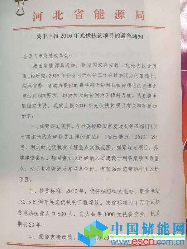 原標題:河北省能源局發(fā)布關于上報2016年光伏扶貧項目的緊急通知
