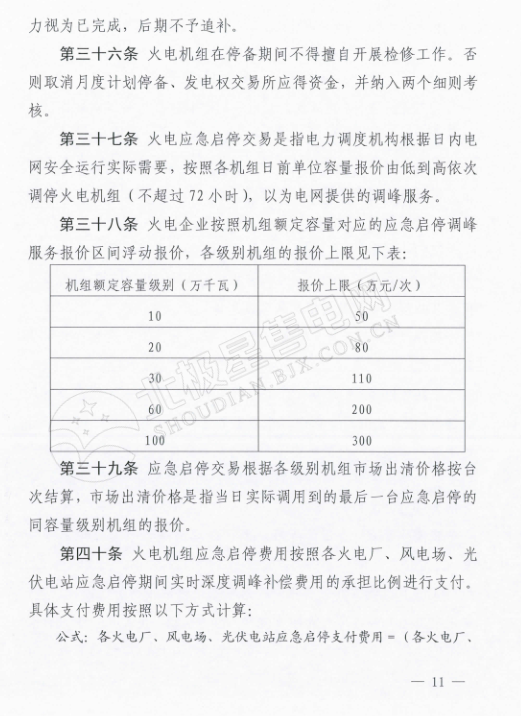 其中火電應(yīng)急啟停交易根據(jù)各級(jí)別機(jī)組市場(chǎng)出清價(jià)格按臺(tái)次算?;痣娖髽I(yè)按照機(jī)組額定容量對(duì)應(yīng)的應(yīng)急啟停調(diào)峰服務(wù)報(bào)價(jià)區(qū)間浮動(dòng)報(bào)價(jià)。
