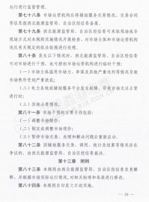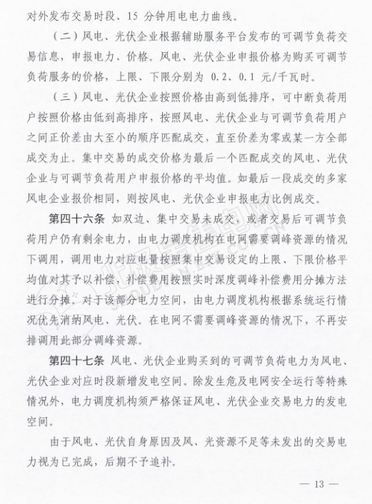 而在這份《電力輔助服務(wù)市場(chǎng)運(yùn)營(yíng)規(guī)則》里,可以看出寧夏全力支持新能源消納的態(tài)度。為火電企業(yè)的停機(jī)備用也做出了調(diào)停補(bǔ)償?shù)囊?guī)定,補(bǔ)償時(shí)間最長(zhǎng)為10天,免去了火電企業(yè)的后顧之憂。另外,還規(guī)定了風(fēng)電、光伏企業(yè)購(gòu)買(mǎi)到的可調(diào)節(jié)負(fù)荷電力為風(fēng)電、光伏企業(yè)對(duì)應(yīng)時(shí)段的新增發(fā)電空間,電力調(diào)度機(jī)構(gòu)須嚴(yán)格保證風(fēng)電、光伏企業(yè)交易電力的發(fā)電空間,為風(fēng)、光企業(yè)增加了一道護(hù)身符。
