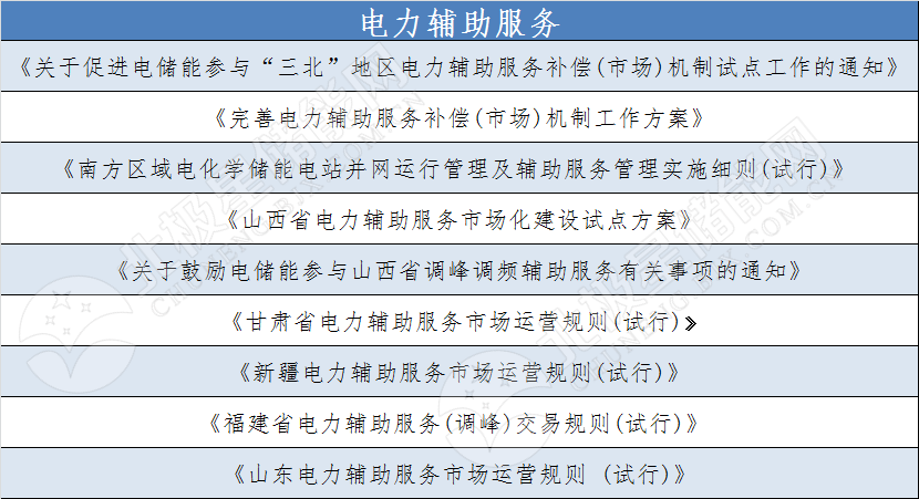 2017年11月15日,《完善電力輔助服務(wù)補(bǔ)償(市場(chǎng))機(jī)制工作方案》印發(fā),文件中提出,鼓勵(lì)儲(chǔ)能設(shè)備、需求側(cè)資源參與提供電力輔助服務(wù),允許第三方參與提供電力輔助服務(wù)。在全球范圍看,輔助服務(wù)是最先實(shí)現(xiàn)儲(chǔ)能商業(yè)化應(yīng)用的領(lǐng)域,而在中國(guó),只有部分省份下發(fā)了電儲(chǔ)能參與電力輔助服務(wù)市場(chǎng)的文件,其中包括山西、甘肅、新疆、福建、山東等省份,文件中有明確提出電儲(chǔ)能可以參與輔助服務(wù)市場(chǎng)。值得一提的是,去年12月,南方監(jiān)管局下發(fā)了《南方區(qū)域電化學(xué)儲(chǔ)能電站并網(wǎng)運(yùn)行管理及輔助服務(wù)管理實(shí)施細(xì)則(試行)》,細(xì)則中明確指出,儲(chǔ)能電站根據(jù)電力調(diào)度機(jī)構(gòu)指令進(jìn)入充電狀態(tài)的,按其提供充電調(diào)峰服務(wù)統(tǒng)計(jì),對(duì)充電電量進(jìn)行補(bǔ)償,具體補(bǔ)償標(biāo)準(zhǔn)為 0.05 萬(wàn)元/兆瓦時(shí),這是首個(gè)區(qū)域性的電儲(chǔ)能電站并網(wǎng)補(bǔ)償文件,說(shuō)明國(guó)家鼓勵(lì)儲(chǔ)能參與電力輔助服務(wù)。