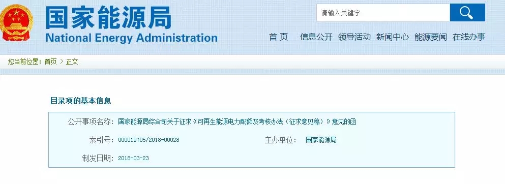 為全面貫徹黨的十九大精神,推動(dòng)能源生產(chǎn)和消費(fèi)革命,促進(jìn)生態(tài)文明建設(shè),依據(jù)《中華人民共和國(guó)可再生能源法》,我們組織研究起草了《可再生能源電力配額及考核辦法(征求意見稿)》及其編制說(shuō)明。請(qǐng)你單位結(jié)合職能研提意見,并請(qǐng)于3月30日前將書面意見反饋我局新能源司。