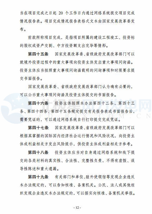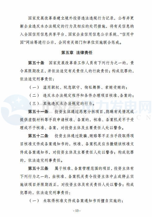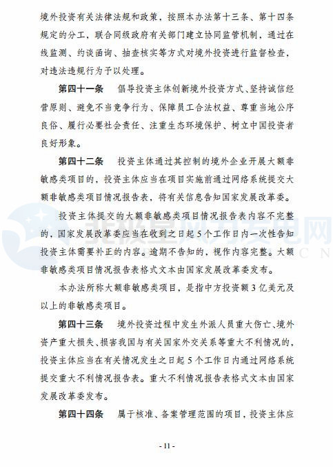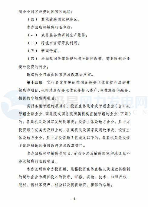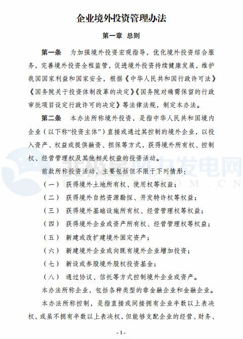 中國儲能網(wǎng)訊:國家發(fā)改委昨日(12月26日)發(fā)布中華人民共和國國家發(fā)展和改革委員會令第11號,公布《企業(yè)境外投資管理辦法》,對境外投資項目核準和備案、境外投資監(jiān)管、法律責任等作出l了規(guī)定。以下為文件全文: