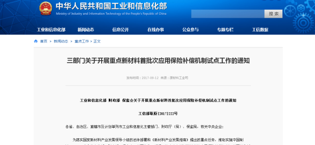新材料首批次保險(xiǎn)補(bǔ)償機(jī)制:保監(jiān)會(huì)商工業(yè)和信息化部、財(cái)政部明確參與試點(diǎn)的承保的保險(xiǎn)公司;新材料生產(chǎn)企業(yè)根據(jù)生產(chǎn)經(jīng)營(yíng)實(shí)際情況自主決定是否購(gòu)買新材料保險(xiǎn);申請(qǐng)保費(fèi)補(bǔ)貼資金。符合條件的投保企業(yè),可申請(qǐng)中央財(cái)政保費(fèi)補(bǔ)貼資金,補(bǔ)貼額度為投保年度保費(fèi)的80%。保險(xiǎn)期限為1年,企業(yè)可根據(jù)需要進(jìn)行續(xù)保。補(bǔ)貼時(shí)間按照投保期限據(jù)實(shí)核算,原則上不超過(guò)3年。