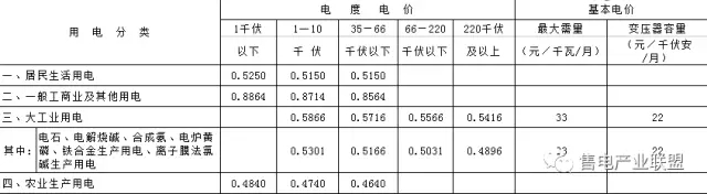 注:1.上表所列價格,均含農網還貸資金2分錢,國家重大水利工程建設基金0.3分錢。