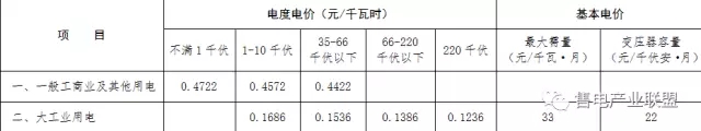 注:1.表中電價含增值稅、線損及交叉補貼,不含政府性基金及附加。