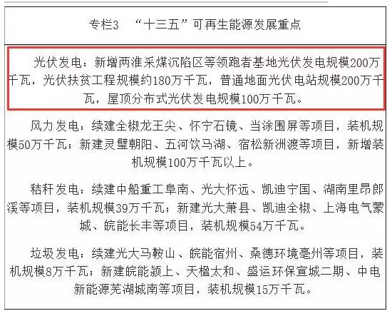 ■ 安徽省能源發(fā)展“十三五”規(guī)劃:2020年光伏裝機(jī)規(guī)模達(dá)8GW