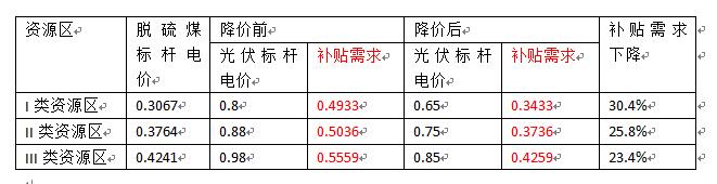 上網(wǎng)電價下調(diào)帶來的補貼需求下降(單位:元/kwh)