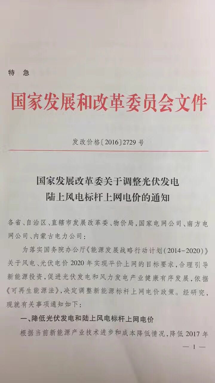 中國儲能網(wǎng)訊:坊間一直在傳的2017年光伏上網(wǎng)電價終于正式下發(fā)。