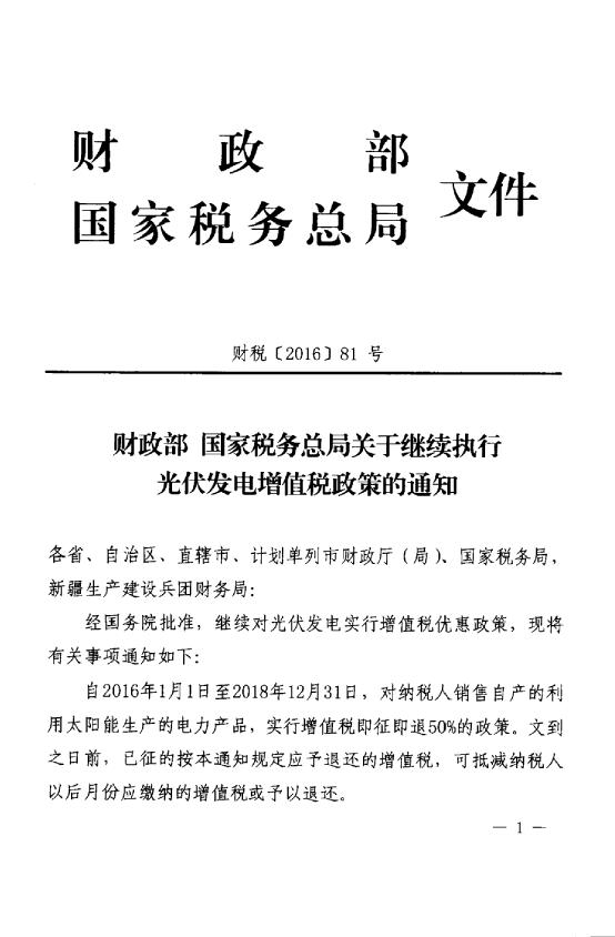 原標(biāo)題:財政部 國家稅務(wù)總局關(guān)于繼續(xù)執(zhí)行光伏發(fā)電增值稅政策的通知