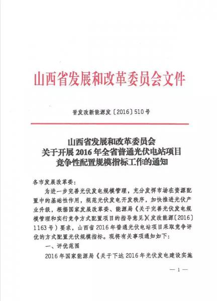 中國儲(chǔ)能網(wǎng)訊:日前,山西發(fā)改委下發(fā)《關(guān)于開展2016年全省普通光伏電站競爭性配置規(guī)模指標(biāo)工作的通知》,要求各市發(fā)改委須于7月28日前,統(tǒng)一組織各市參與評優(yōu)的光伏發(fā)電項(xiàng)目,完成資料報(bào)送工作。