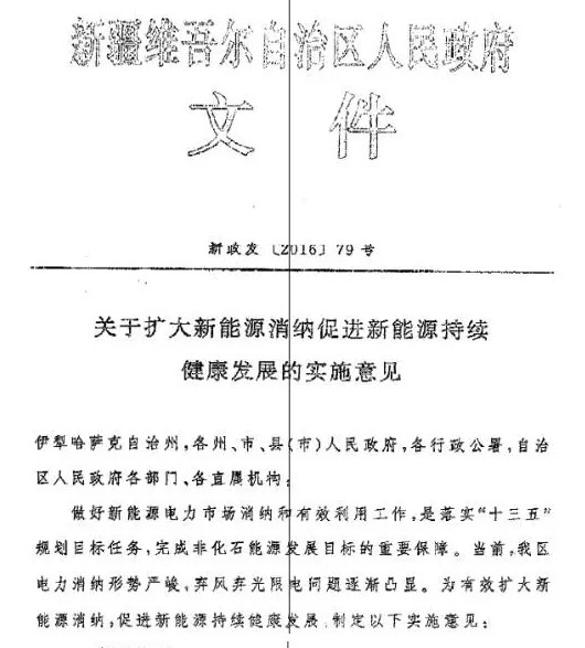 新疆維吾爾自治區(qū)人民政府《關(guān)于擴(kuò)大新能源消納促進(jìn)新能源持續(xù)健康發(fā)展的實(shí)施意見》