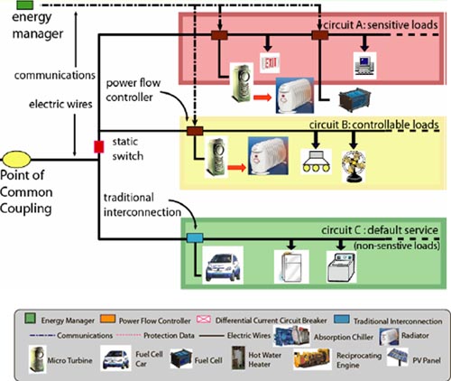 示范了對三類不同供電質(zhì)量要求的負荷的個性化微電源供電方案