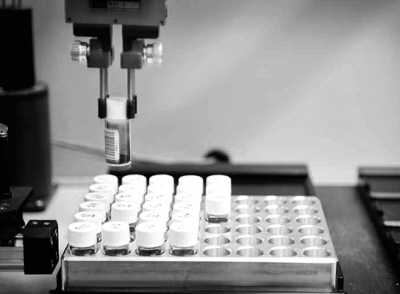 由于要處理的樣品太多,野貓發(fā)現(xiàn)技術(shù)公司非常依賴自動(dòng)化。圖中的分析儀正在對(duì)裝有材料的小瓶進(jìn)行稱重和記錄。