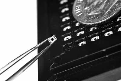 每塊電池上的黑色方塊就是砷化鎵,使用如此少量的昂貴材料可以降低成本。