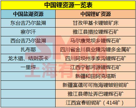 中國鋰資源一覽表: